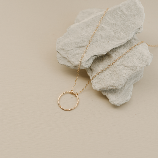 Fawn And Rose 14K包金紋理圓形吊墜頸鏈 | 英國製造 (歐洲首飾)