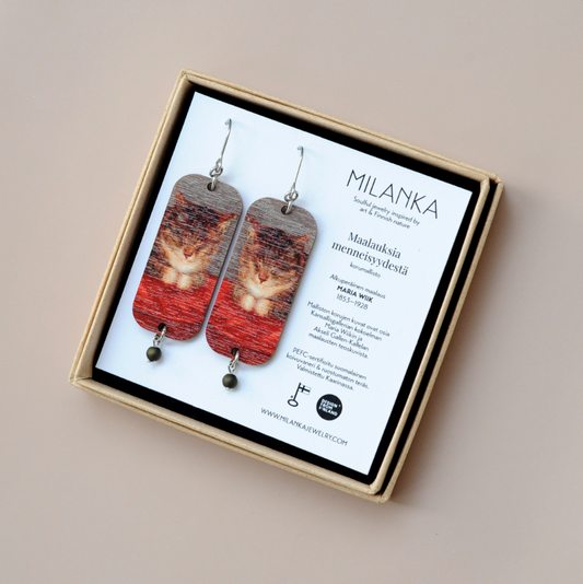 MILANKA JEWELRY 木製永續「來自過去的畫作」系列耳環:貓咪莫斯 | 芬蘭製造 (北歐首飾)