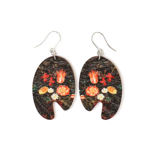MILANKA JEWELRY 木製永續「來自過去的畫作」系列耳環:花卉 | 芬蘭製造 (北歐首飾)