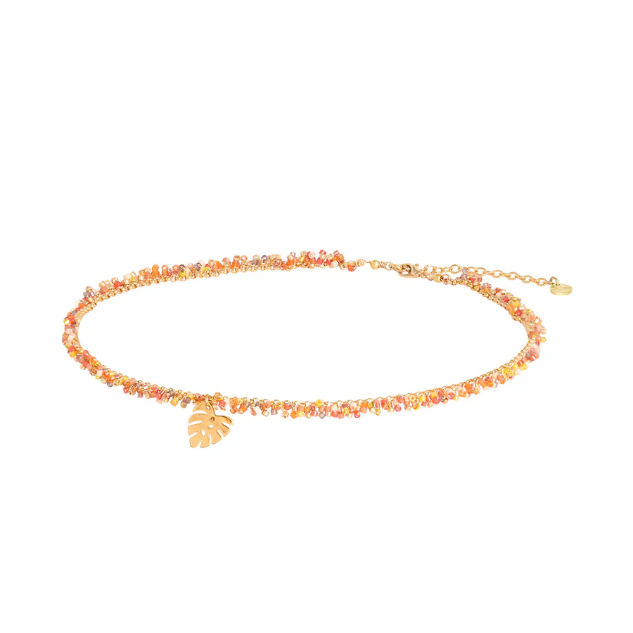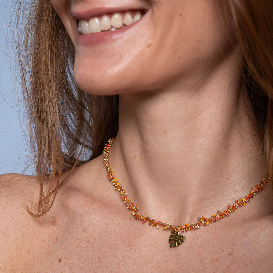 MISHKY 金色樹葉吊飾橙色珠頸鏈 | 哥倫比亞製造 (南美首飾)